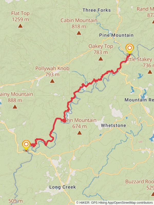 Map of Chattooga River Trail from Highlands Highway, Rabun County